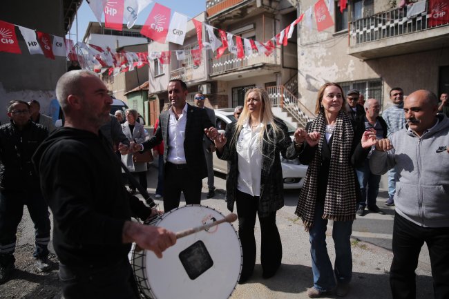 Seçim çalışmalarını haftanın son gününde yoğun bir tempoyla sürdüren Cumhuriyet Halk Partisi (CHP) Konak Belediye Başkan Adayı Mimar Nilüfer Çınarlı Mutlu, İzmir Büyükşehir Belediye Başkan Adayı Cemil Tugay ve İzmir Milletvekili Ednan Arslan ile birlikte Erzincan Tercanlılar Eğitim ve Kültür Derneği tarafından düzenlenen kahvaltıya katıldı. Ardından Çınartepe, Çobançeşme ve Zeytinlik mahallelerinde bulunan seçim ofislerinin açılışını gerçekleştiren CHP’li Mutlu, sahada gece gündüz çalışan parti emekçilerine teşekkür etti. Boğaziçi ve İsmetpaşa mahallelerindeki seçim ofislerinin kurdelelerini ise Büyükşehir Adayı Cemil Tugay ile birlikte kesen Mutlu’nun bir sonraki durağı Gültepe Makedonya Göçmenleri Kültür ve Dayanışma Derneği oldu. Gittiği yerlerde davul zurna ve meşalelerle karşılanan Mutlu, vatandaşlarla birlikte halay da çekti.