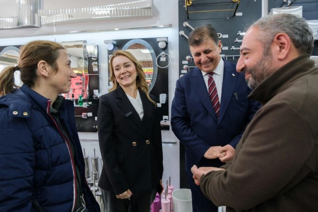 Konak’ın ticaret potansiyelini artırmayı amaçlayan CHP Konak Belediye Başkan Adayı Nilüfer Çınarlı Mutlu, daha sonra Mimar Kemalettin Moda Merkezi’ni ziyaret etti. Esnafın beklenti ve ihtiyaçlarını dinleyen Mutlu’ya, İzmir Terziler ve Konfeksiyoncular Odası Başkanı Mustafa Güvenli, Mimar Kemalettin Moda Merkezi Derneği’nden Nevzat Arduç, meclis üyesi adayları ile il ve ilçe yöneticileri de eşlik etti. Ticaret merkezlerine yönelik yeni düzenlemeler ve projeler hakkında fikir alışverişinde bulunan Mutlu, “Burası benim çok önemsediğim bir yer. İzmir’in ilçelerinden ve diğer şehirlerden gelinen bu önemli merkezi daha iyi hale getireceğiz. Canlandırmak için moda günleri, defileler düzenleyeceğiz. Çarşımızı öne çıkarmak için çok çalışacağız. İzmir’i ve sorunlarını bilen bir mimar olarak yola çıktım. En büyük avantajım mesleğim. Mesleki birikimimle, yerel yönetim deneyimimle bu işe talip oldum. Desteğiniz benim için çok kıymetli” dedi. Alışveriş için merkeze gelen vatandaşlar hayat pahalılığından şikayet ederken, esnaf ise “Hiç merak etmeyin, desteklerimiz sizinle. CHP’den başkası olmaz” diyerek Mutlu’ya desteğini dile getirdi.