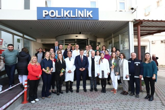 CHP Konak Belediye Başkan Adayı Nilüfer Çınarlı Mutlu, Büyükşehir Belediye Başkan Adayı Cemil Tugay ile birlikte 14 Mart Tıp Bayramı dolayısıyla İzmir Büyükşehir Belediyesi Eşrefpaşa Hastanesi’ni ziyaret etti. Türkiye’nin tek belediye hastanesinin başhekimi Op. Dr. Yavuz Uçar ve sağlık çalışanlarıyla bir araya gelen Tugay ile Mutlu, faaliyetler hakkında bilgi aldı. Sağlık emekçilerine özverili çalışmalarından dolayı teşekkür eden ve bayramlarını kutlayan Tugay ile Mutlu, hastalara da geçmiş olsun dileklerinde bulundu. Ziyarette konuşan Tugay, daha sağlıklı bir şehir hedefiyle sağlık alanında ilçe belediyelerle koordineli çalışmalar yürüteceklerini vurguladı. Tugay ve Mutlu daha sonra Yenişehir’de bulunan Gıda Çarşısı’nda esnaf turu yaptı. Çarşı girişinde çeşitli iş kolundan esnaf temsilcisi tarafından karşılanan Tugay ile Mutlu, talep ve beklentileri dinledikten sonra tek tek dükkanları gezdi.