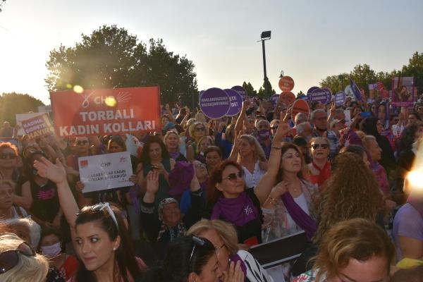İzmir'in Konak ilçesinde CHP Kadın Kolları tarafından kadına yönelik şiddete ve kadın cinayetlerine dikkat çekmek amacıyla etkinlik düzenlendi. Etkinlikte CHP Kadın Kolları Başkanı Aylin Nazlıaka'nın yanı sıra CHP İzmir İl Başkanı Deniz Yücel, CHP İzmir Milletvekili Kani Beko, CHP İzmir İl Kadın Kolları Başkanı Nurdan Şenkal Uçar yer aldı. Etkinlikte, erkekler tarafından katledilen kadınların yakınları konuşarak adalet çağrısında bulundu. Kadınlara seslenen Nazlıaka, "Buradan kadınların yediğine, içtiğine, giydiğine, kaç çocuk doyuracağına, yaşam tercihlerine, sürdüğü rujun rengine, saçının modeline, başı bağlı mı açık mı diye ayrımcılık yapanlara kırmızı kart gösteriyoruz. Aslında kadına yönelik şiddeti de çocuğa yönelik istismarı da durdurmanın tek bir yolu var; sandık. O sandık gelecek ve kadına yönelik şiddeti tolere edilebilir bulanlar, kadını iki cinsiyetten biri değil ikinci cinsiyet olarak tarifleyenler, kadın cinayetlerinden sayı diye bahsedenler, kadınları ayrıştırmaya çalışanlar ilk seçimlerde bizlerin iradesiyle birlikte o sandığa gömülecek" dedi.