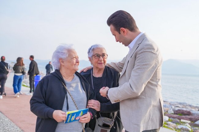 Büyüklerimiz ve dezavantajlı vatandaşlarımız için kısmi zamanlı ve 3 günlük refakat hizmeti vereceğiz. Yakınlarının gün içinde işlerini ve tatillerini yapabilmeleri için refakat hizmeti sağlayacağız. Hem fiziksel hem de sosyal beceriler için aktiviteler düzenleyeceğiz. Kültür ve sanat etkinliklerinden indirimli yararlanmalarını sağlayacağız. İhtiyaç sahiplerine ücretsiz evde tamir hizmeti vereceğiz. İhtiyaç sahiplerine ücretsiz hasta nakil hizmeti vereceğiz. İhtiyaç sahiplerine ücretsiz gıda, yakacak, nakdi ve ayni yardımları sağlayacağız. Sosyal İzmirimKart ile yıllık 10 bin TL nakdi destek ve 50 metreküp doğal gaz desteği sağlayacağız. Akıllı bileklikler ile evde bakıma muhtaç büyüklerimizin sağlık durumlarını takip edeceğiz.” şeklinde konuştu.