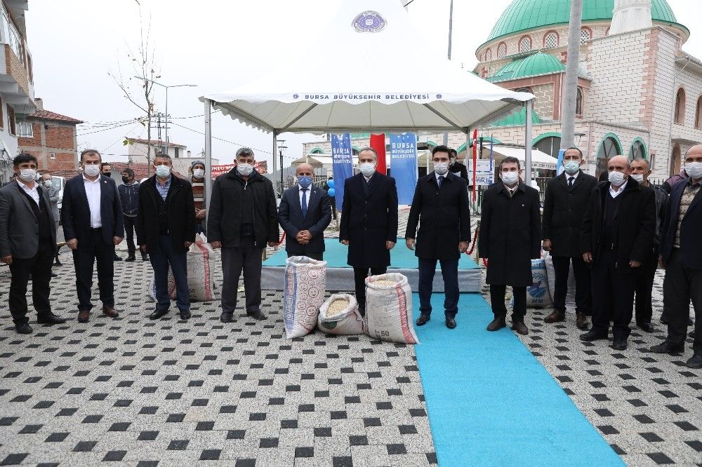 Büyükşehir Belediyesi'nce hizmete alınan Büyükorhan İlçe Meydanı, hayırlı bir hizmete ev sahipliği saptı. Büyükşehir Belediyesi'nin 'Dağ Yöreleri Organik Siyez Yetiştiriciliği Projesi' çerçevesinde 18 mahalleden 43 çiftçiye, organik siyez buğday tohumu hibe edildi. Tohumları Büyükşehir Belediye Başkanı Alinur Aktaş'ın elinden alan çiftçiler, yapılan yönlendirme ve verilen destek nedeniyle başta Başkan Aktaş olmak üzere projede emeği geçenlere teşekkür etti. Siyez buğday tohumu dağıtılmasıyla ilgili düzenlenen törene, Başkan Aktaş'ın yanı sıra Büyükorhan Kaymakamı Kadir Kılıç ve İlçe Belediye Başkanı Ahmet Korkmaz da katıldı. Büyükşehir Belediyesi'nin siyez desteğinden Büyükorhan'ın Pınar, Osmanlar, Derecik, Geynik, Balaban, Yenice Karalar, Gedikler, Çeribaşı, Merle, Yenice, Perçin ve İsmetiye, Keles'in Yazıbaşı ve Orhaneli'nin Kadıköy, Yakuplar, Emir ve Akalan mahallelerinde tarımla uğraşan vatandaşlar yararlandı.
