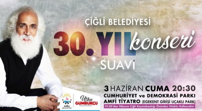 Çiğli Belediyesi Fakir Baykurt Salonu ve Fuaye Alanı'ndaki etkinliklerin ardından kutlamalar sanatçı Suavi'nin saat 20:30'da Cumhuriyet ve Demokrasi Parkı Anfi Tiyatrosu'nda sahne alacağı konserle devam edecek.