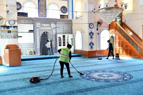 İZMİR'in Çiğli ilçesinde, belediye tarafından, ramazan ayı öncesinde, ilçedeki tüm camilerde temizlik ve dezenfeksiyon çalışmaları yapıldı.