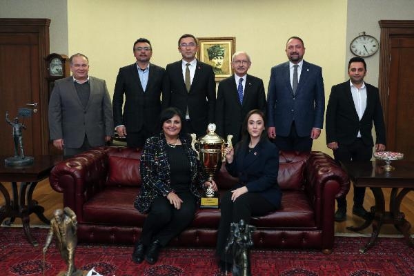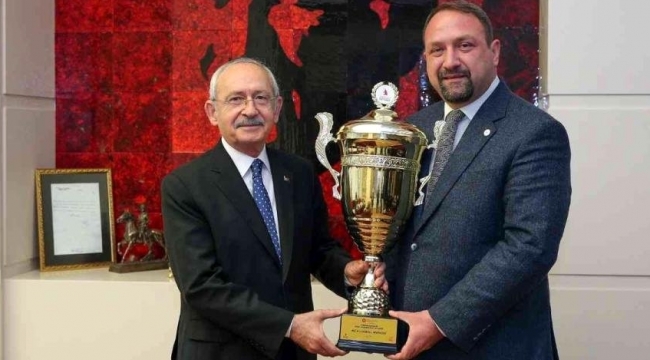 İZMİR'in Çiğli Belediye Başkanı Utku Gümrükçü, Cumhuriyet Halk Partisi (CHP) Genel Başkanı Kemal Kılıçdaroğlu'nu ziyaret ederek Çiğli Belediyesi Bear Sailing Yelken Takımı'nın kazandığı Cumhurbaşkanlığı kupasını Kılıçdaroğlu'na takdim etti.