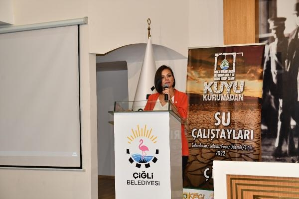 Çalıştayda konuşan Çiğli Belediye Başkanı Utku Gümrükçü, "Su soruna kalıcı çözümler getirebilmek için öncelikle 'Kuyu neden kuruyor?' sorusunu sormamız lazım. İnsanlığın ilk dönemlerinden itibaren su, insan yaşamı için vazgeçilmez bir unsur olmuştur. Son iki yüzyılda yaşanan kapitalizm ve sanayi devrimiyle birlikte su kaynakları kirlenmeye ve hızla tükenmeye başlamıştır. Çiğli Belediyesi olarak, su kaynaklarımızı korumak ve su israfının önüne geçmek için önemli çalışmalar yürütüyoruz. Kurum bünyemizde gerçekleştirdiğimiz demirbaş değişimleriyle yılda 40 bin ton su tasarrufunda bulunuyoruz. İlçemizde 200'e yakın parkımız var. Bu parkların yüzde 40'ında otomatik sulama sistemini kurduk. En kısa sürede tüm paralarımızda bu sisteme geçeceğiz. İsrafı önlemenin yanı sıra ilçemizdeki en önemli su kaynaklarından biri olan Gediz Deltası'yla ilgili çalışmalarımız da sürüyor. Gediz'deki su kirliliğini ölçmek için istasyonlar kurduk. Buradan elde ettiğimiz verileri Katip Çelebi Üniversitesi ile paylaşıyoruz. Gediz'deki suyun bölgede tarımsal üretimde kullanılabilmesi için projeler geliştiriyoruz. Geçmişte olduğu gibi bugün ve gelecekte de hayat anlamına gelecek olan suyu çocuklarımıza temiz bir şekilde bırakabilmek için çalışmaya devam edeceğiz" ifadelerini kullandı.