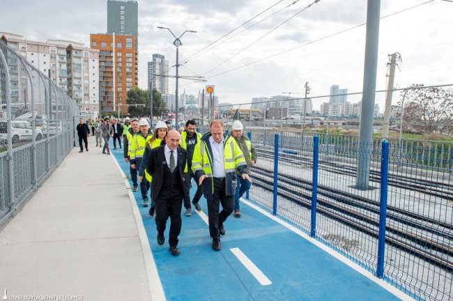İzmir Büyükşehir Belediyesi, çevreci ekonomik ve konforlu kent ulaşımına yeni bir soluk kazandıracak önemli projelerinden Çiğli Tramvayı’nın inşaatı kapsamında hattı Karşıyaka Tramvayı'na bağlayacak yaya ve bisiklet yolunu da içeren 750 metre uzunluğunda viyadük, 6 trafo binası, 14 adet durak ve 11 kilometrelik hat imalatını (22 bin 600 metre ray montajı) tamamladı. Hatta çevre düzenlemeleri ve sinyalizasyon çalışmalarında sona yaklaşıldı.