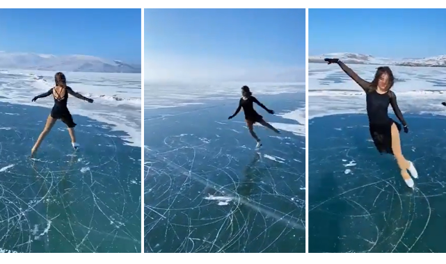 Çıldır gölünde buz pateni yapınca bir anda gündem oldu