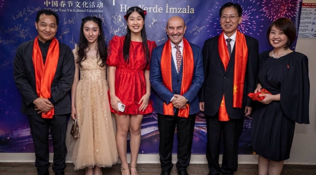 Başkan Tunç Soyer, Çin'in geleneksel halk danslarıyla karşılandı. Büyükelçi Shaobin ile Çin'in 2023 yılı anısına hazırladığı panoyu imzalayan Başkan Soyer, mutfaktan el sanatlarına Çin kültürünün sergilendiği stantları da gezdi.