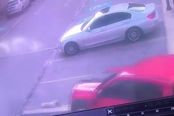 DENİZLİ'nin Merkezefendi ilçesinde bir alışveriş merkezinin otoparkında yatan sokak köpeğinin üzerinden geçti. O anlar, güvenlik kamerasına yansıdı.