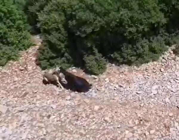 Çoban, keçiye saldıran çakalı dronla görüntüledi