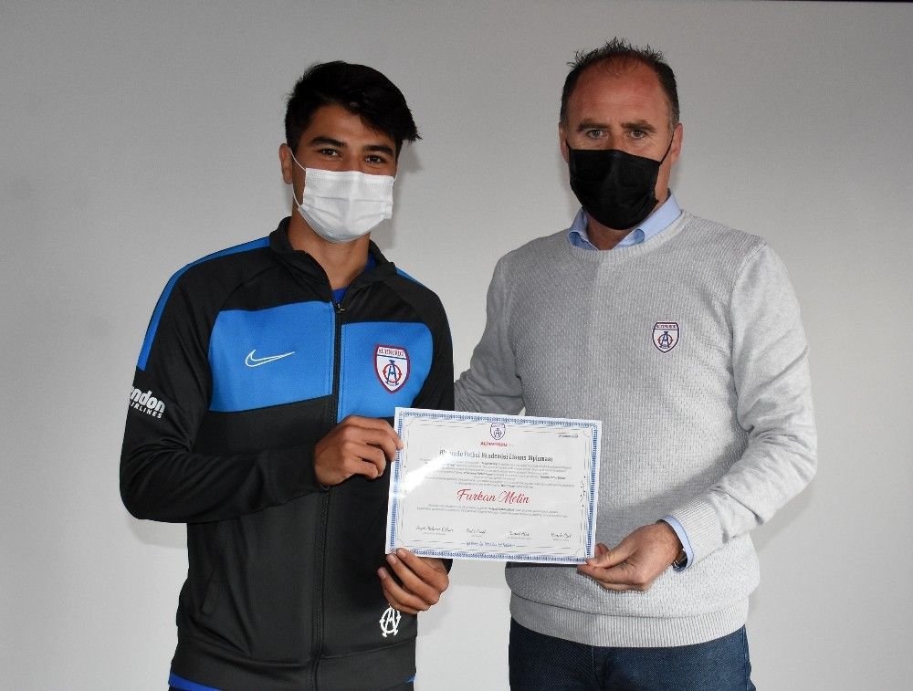 Altınordu Futbol Akademisi'nde eğitimi sürerken TFF 1. Lig'de 3 maçta başarıyla görev alan genç oyuncu Furkan Metin, A Takım kadrosuna diploma töreni ile uğurlandı.