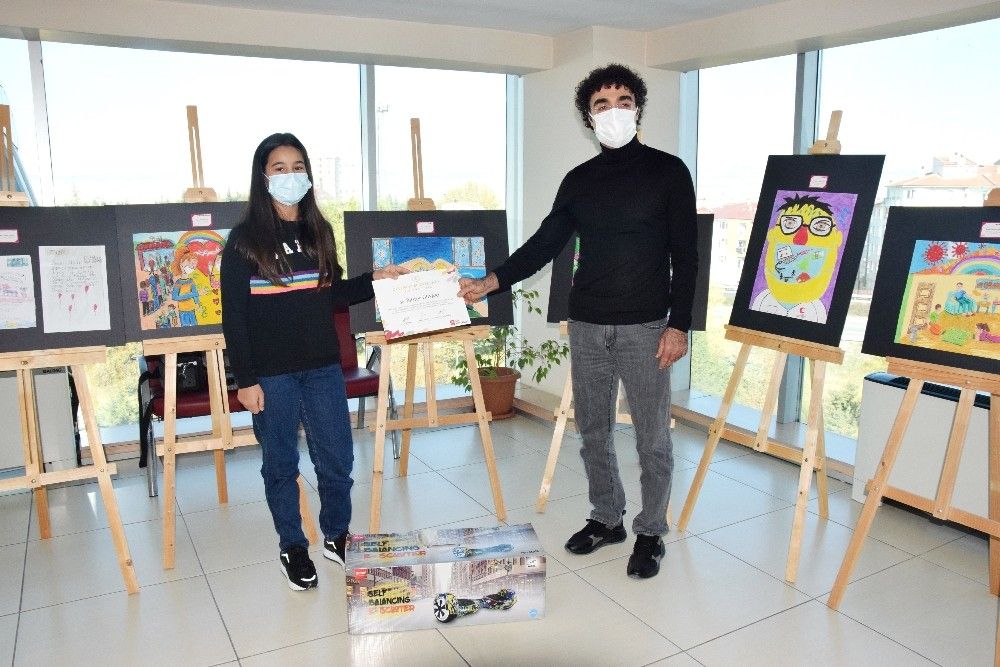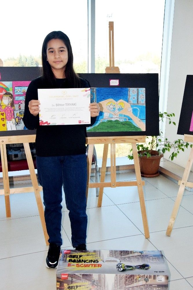 Özel Ümit Hastanesi Resim Yarışması'nda birinciye; elektrikli scooter, ikinciye; elektrikli kaykay hoverboard, üçüncüye; profesyonel paten, mansiyon ödülü kazanan öğrencilere ise; akıllı bileklik hediye edildi.