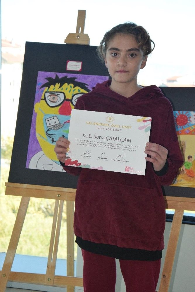 Pandemi nedeniyle ödüllerini ayrı ayrı alan öğrencileri aileleri ve öğretmenleri de yalnız bırakmadı. Dereceye giren öğrencilere ödül ve sertifikaları, sosyal mesafeye uygun şekilde Özel Ümit Hastanesi İdari Direktörü Oktay Tanrıverdi tarafından verildi. Ödül töreninde konuşan Tanrıverdi, "Coronavirüs ile hayatımıza giren pandemi dönemi rutin hayatımızda değişikliklere yol açtı. Bu dönemde okullarımızdan, oyun alanlarımızdan, sevdiğimiz aktivitelerden bir süre fiziki olarak uzak durmak zorunda kaldık. Aynı zamanda yeni alışkanlıklar hayatımıza girdi ve bunlara uyum sağlamaya çalıştık. Pandemi her ne kadar negatif bir durum olsa da bizlere hayata dahil başta sağlığımızın kıymetini bilmemiz olmak üzere, özgürlüğümüzün, aile ve sevdiklerimizle vakit geçirmenin, hijyenin sağlığımızdaki yerinin, okul hayatımızın, doğa ve hayvan sevgisinin önemini öğretti. Bu sebeplerden Özel Ümit Hastaneleri olarak pandeminin öğrencilere neler öğrettiğini merak ederek, geleneksel resim yarışması konumuzu 'Pandemiden Neler Öğrendik' başlığı altında belirlemiştik. Resim yarışmamıza yoğun ilgi gösteren tüm sevgili öğrencilerimizi tebrik eder, katkı sağlayan değerli eğitimcilerimize ve ilgi gösteren velilerimize teşekkürlerimizi sunarız." dedi.