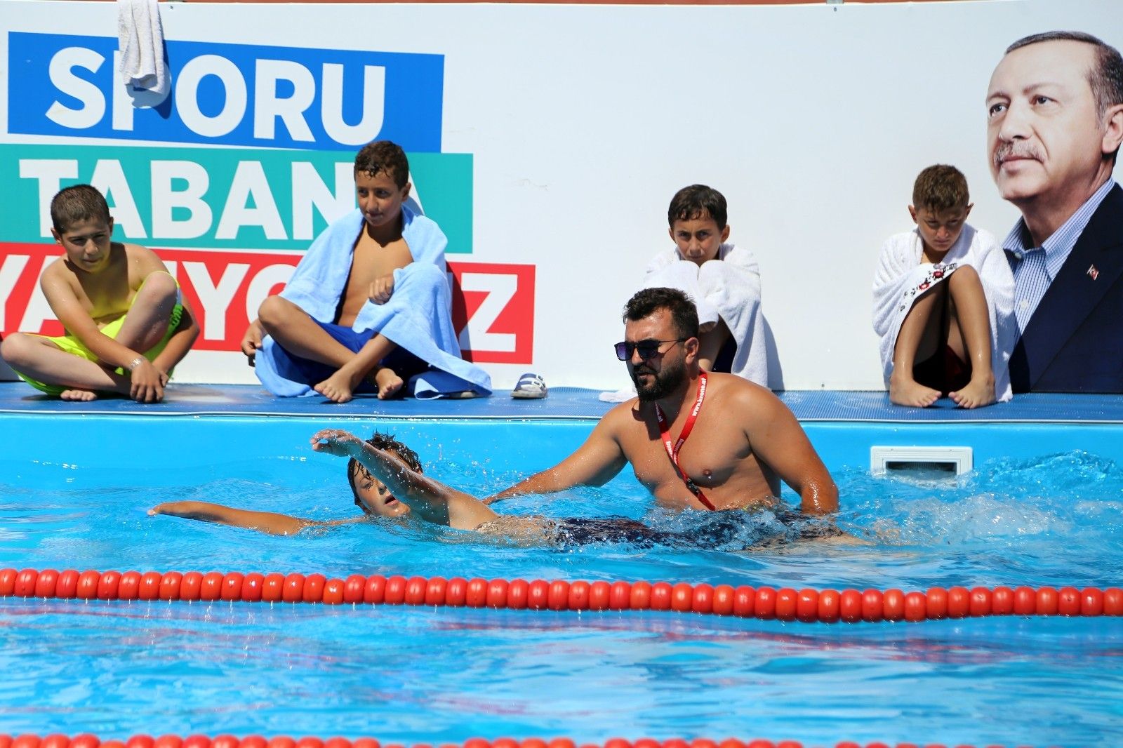 İlk günden itibaren yoğun ilgi gören tesiste özellikle gelişim çağındaki çocukların fiziksel ve ruhsal gelişimlerine destek olan yüzme sporu 50 çocuğa öğretiliyor. Haftanın 4 günü hizmet veren portatif yüzme havuzu 8x16 metre boyutlarında ve 1.30 metre derinliğinde.