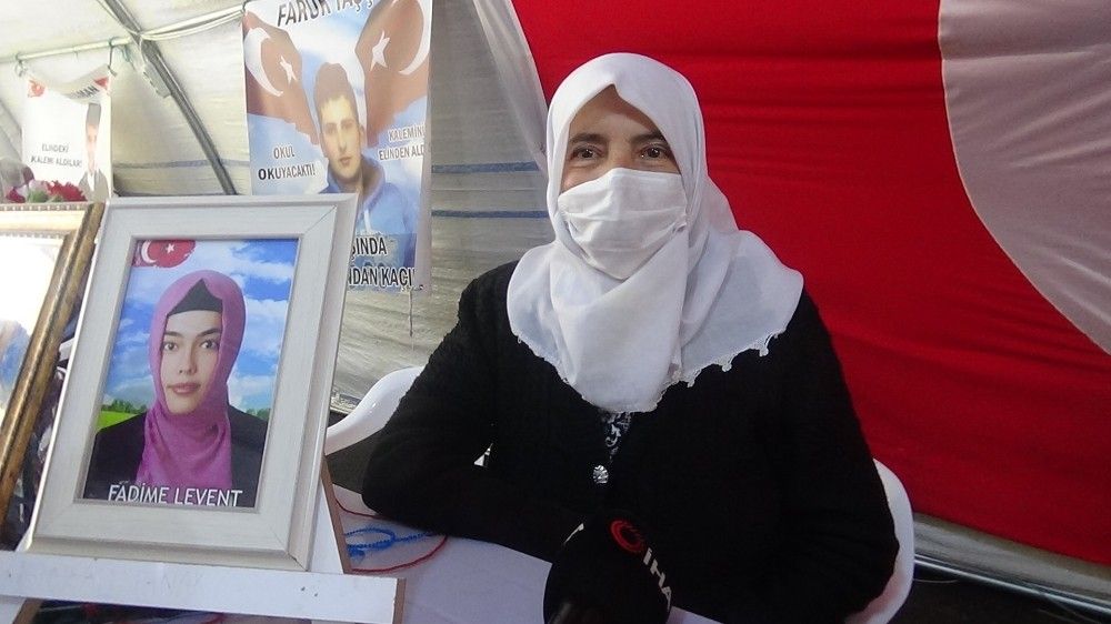 Çocuklarının terör örgütü PKK mensupları tarafından dağa kaçırıldığı iddiasıyla 3 Eylül 2019'dan itibaren farklı kentlerden Diyarbakır'a gelip HDP il binası önünde evlat nöbetine başlayan ailelerin eylemi 566 gündür sürüyor. Kütahya'dan Diyarbakır'a gelip HDP İl Başkanlığı binası önünde eyleme katılan Hatice Levent, Bitlis'te üniversite okuduğu sırada kızı Fadime'nin terör örgütü PKK mensupları tarafından dağa kaçırıldığını söyledi. Levent, "Bizim ya ölümüz ya da çocuklarımız, bizim çocuklarımızı bize yollasınlar. Elleri kalem tutacaktı, silah verdiler, o vicdansızların verdikleri silahlar kendilerinde patlasın. Bizim çocuklarımızın acaba suçu neydi, bir gün kendi çocukları gelmezse dünyayı yıkarlar. Ama biz Türk ve Kürt anneleri olarak sabrımızı Rabbimiz veriyor, onların belalarını da o verecek" dedi.