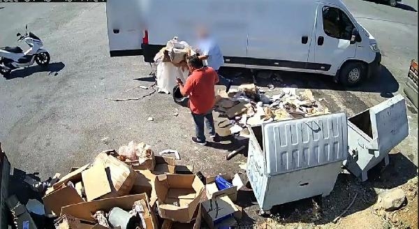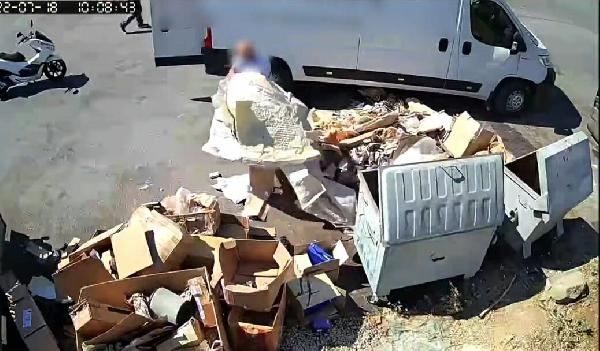 MUĞLA'nın Bodrum ilçesinde, kamyonetinin kasasındaki çöpleri önündeki konteyner yerine yere boşaltan kişi, belediye ekiplerince tespit edildi. Bu kişiye döktüğü çöpler geri toplatılırken o anlar güvenlik kamerasına yansıdı.