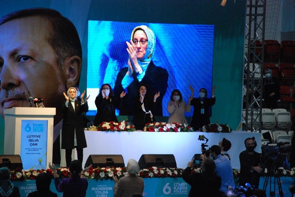 AK Parti Kadın Kolları Genel Başkanı Lütfiye Selva Çam da "20 yıldır iktidar yürüyüşümüzde sizlerin emeği, sizlerin gözyaşı, sizlerin duası çok fazla. Bunu hem sahada hem kapı kapı dolaşarak yaşıyoruz. sizler yeri geldi Ramazan sofralarında dua okudunuz, yeri geldi analarımızın yanında yüzlerinde tebessüm oldunuz, yeri geldi yetim çocukların omzunda el oldunuz, yeri geldi sağlık çalışanlarımızın yavrularına yemek götürdünüz. Emekleriniz çok büyük, Allah hepinizden razı olsun. Bu sahnede ana muhalefet partisi il kongrelerini yapıyormuş. İzmir'imizin bu coşkusunu hepimiz görüyoruz. İnşallah 2023 ve 2024'te sizlerin gayretiyle İzmir ak belediyecilikle inşallah buluşacak. Birileri hep konuşuyor. Onlar konuşur, biz yaparız. Ak kadınlar kapı kapı dolaşıp gönüllere girer, elleri sıkar ve her daim yüreğinin yanında, davası için yürür. İnşallah bundan sonra da çalışmalarımıza devam edeceğiz. 2 gün önce ak kadınlarımızın selamını Diyarbakır annelerine götürdük. Zafer Diyarbakır annelerinin ve babalarının olacak. Biz her zaman onların derdiyle dertlenmeye devam edeceğiz" sözlerine yer verdi.
