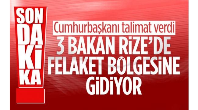 Rize'de yaşanan sel felaketi nedeniyle Çevre ve Şehircilik Bakanı Murat Kurum, İçişleri Bakanı Süleyman Soylu ve Ulaştırma Bakanı ve Altyapı Bakanı Adil Karaismailoğlu bölgeye gidiyor.