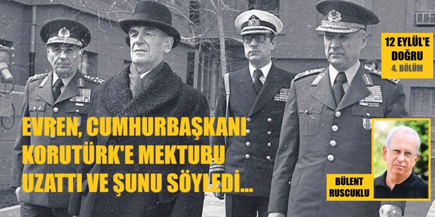 "12 Eylül'e doğru" yazı dizimizin bu bölümünde yine kapalı kapılar ardında konuşulanlar ilk kez okuyacak, ülkenin o günlerde neler yaşadığını göreceksiniz. Genelkurmay Başkanı Evren'in Cumhurbaşkanı Korutürk'e verdiği mektupta ne vardı? Mektup kimlere git