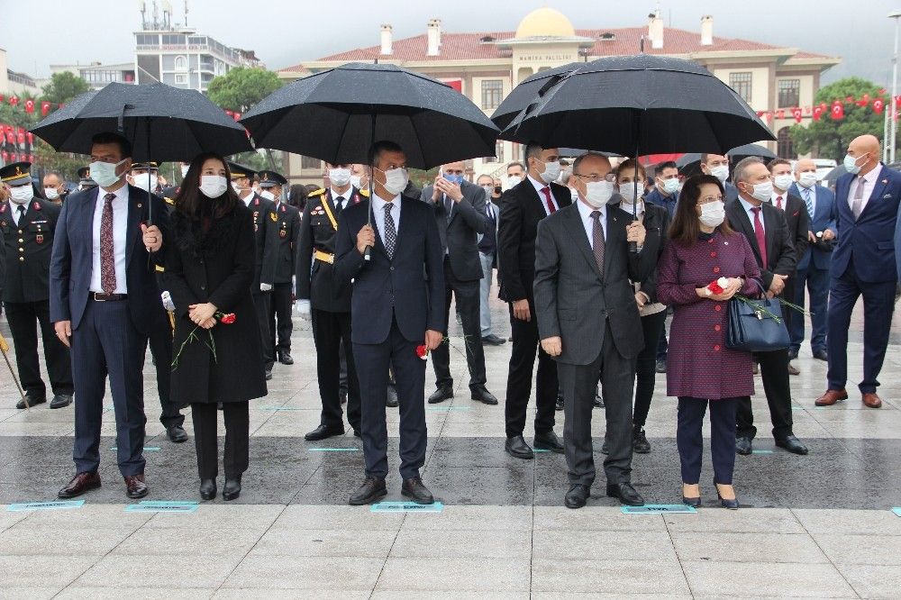 Törene Manisa Valisi Yaşar Karadeniz'in yanı sıra Manisa Büyükşehir Belediye Başkanı Cengiz Ergün, Manisa Celal Bayar Üniversitesi Rektörü Prof. Dr. Ahmet Ataç, CHP Grup Başkanvekili ve Manisa Milletvekili Özgür Özel, AK Parti Manisa Milletvekilleri Tamer Akkal, Semra Kaplan Kıvırcık, AK Parti Manisa İl Başkanı Salih Hızlı, muhalefet partilerinin il başkanları, ilçe kaymakamları, ilçe belediye başkanları, askeri erkan, daire müdürleri, şehit aileleri, gaziler, STK temsilcileri ve öğrenciler katıldı.