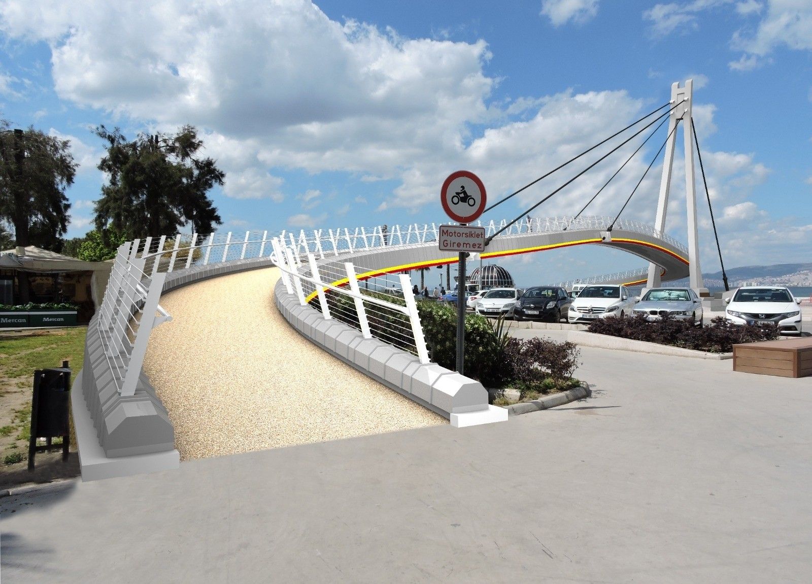 İzmir Büyükşehir Belediyesi, yayaların sahile ve vapur iskelesine ulaşımını kolaylaştıran Mustafa Kemal Sahil Bulvarı üzerindeki Göztepe Şehit Kerem Oğuz Erbay Köprüsü'nde bakım, onarım ve güçlendirme çalışmalarına başlıyor. 1997 yılında "Güzelyalı Üst Geçidi" olarak açılan, 2010 yılında İskenderun'da şehit olan Kerem Oğuz Erbay'ın adını alan 125 metre uzunluğundaki asma çelik köprü, baştan sona yenilenip güçlendirilecek. Bu çalışmalar kapsamında asma köprünün çelik halatları dört geçici ayak konulduktan sonra gevşetilecek, çelik halatların kontrolü sağlanıp tekrar gerilecek ve ardından geçici ayaklar kaldırılacak. Köprü kulesinin (pilon) ayaklarının temelinde güçlendirme yapılacak. Köprü kulesi de gömlekleme yöntemi ile güçlendirilecek. Köprü ayaklarının etrafında ahşap oturma alanı oluşturulacak. Yürüme yolundaki mevcut kaplama sökülecek hem yürüme yolu hem de korkuluklar yenilenecek.