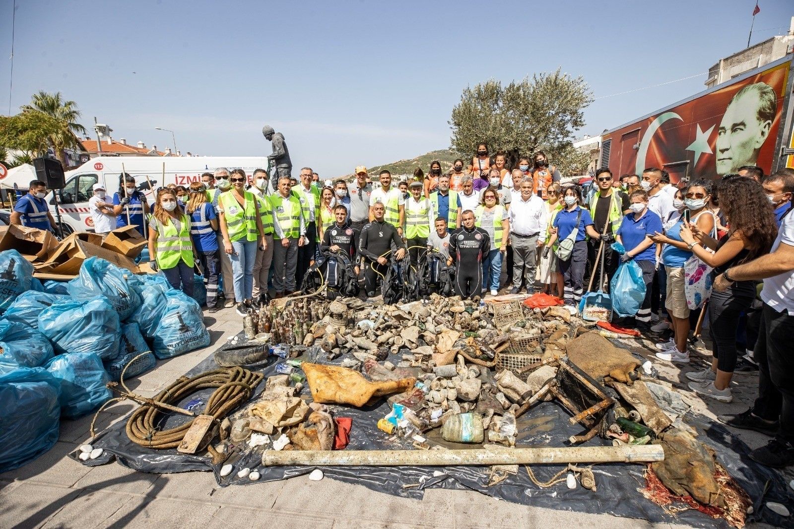 İzmir Büyükşehir Belediye Başkanı Tunç Soyer'in eşi Neptün Soyer, ilçe belediye başkanları ve eşlerinin katılımıyla yapılan farkındalık etkinliğinde, Eski Foça garajından Büyük Deniz Meydanı'na kadar sokaklar temizlendi, çöpler toplandı. İtfaiye Daire Başkanlığına bağlı sualtı dalgıç ekipleri ise Eski Foça'yla beraber Cumhuriyet Meydanı'nda da deniz dibinde temizlik çalışması yaptı. İzmir Büyükşehir Belediyesi İtfaiye Dairesi Başkanı İsmail Derse, denizden içecek şişelerinden kilimlere kadar çok sayıda atık çıktığını belirterek "Foça'da 132 kilogram malzeme çıkarttık. Cumhuriyet Meydanı'nda çalışma devam ediyor. Çevre duyarlılığına dikkat çekmek istiyoruz. Temizlik bir çözüm ama asıl olarak kirletmemek gerekiyor" dedi.