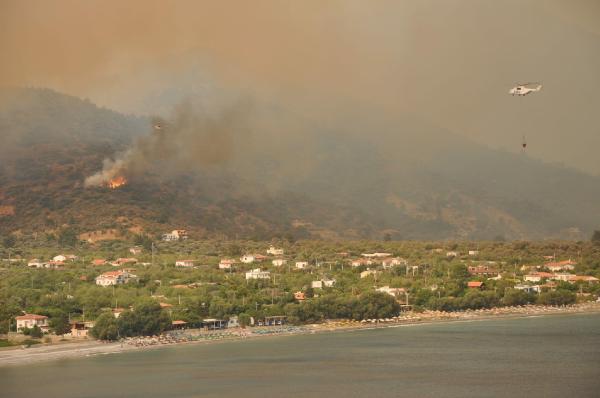 Hava kararmadan alevlerin söndürülebilmesi için bölge görev yapan 9 helikopter hummalı bir çalışma içerisine girdi. Hayıtbükü Koyu'nda denizden aynı anda 5 helikopter birden su takviyesi yapıp, tekrar ormana dönerek alevlere peş peşe müdahale yaptığı görüldü.