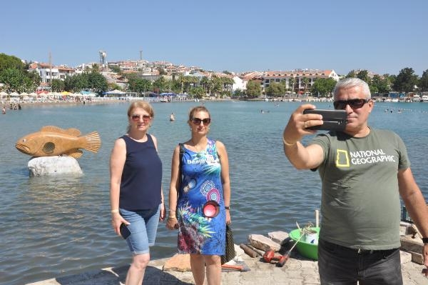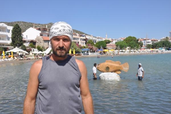 MUĞLA'nın Datça ilçesindeki Kumluk Plajı'na belediye tarafından 10 ton ağırlığında nesli tükenme tehlikesi altında olan orfoz balığı heykeli yerleştirildi. Tatilciler, ilk günden heykele ilgi gösterip, önünde hatıra fotoğrafı çektirdi.