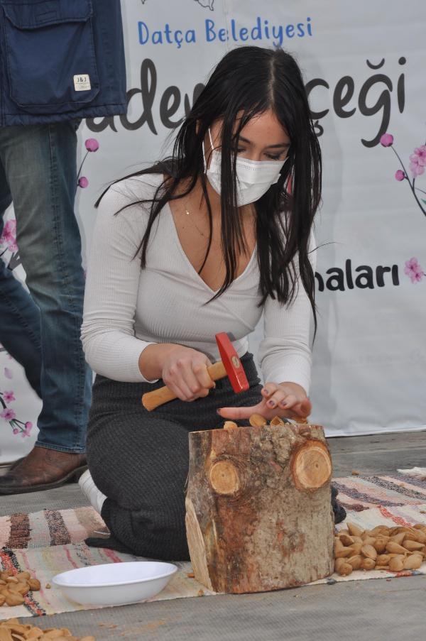MUĞLA'nın Datça ilçesinde, bu yıl pandemi tedbirleri nedeniyle sembolik bir katılımla gerçekleştirilen 5'inci Badem Çiçeği Festivali kapsamında yapılan 'en hızlı badem kırma yarışması' kıran kırana mücadeleye sahne oldu.