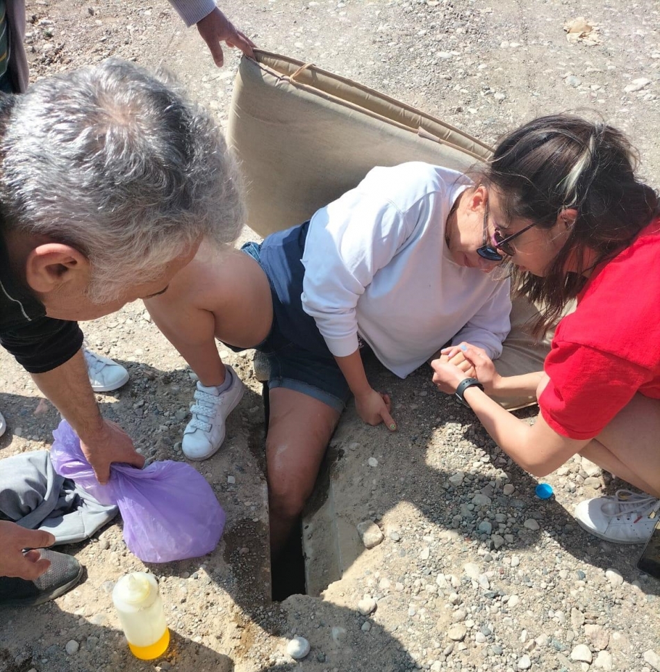 Olay sonrası çevredeki vatandaşlar yardıma koştu ve İtfaiye ve 112 Acil Çağrı Merkezi’ne ihbarda bulunuldu. Olay yerine gelen itfaiye ekipleri uzun uğraşlar sonucu hamile kadını kurtardı. Sağlık ekipleri, bacaklarından yaralanan kadını Datça Devlet Hastanesi’ne kaldırdı.