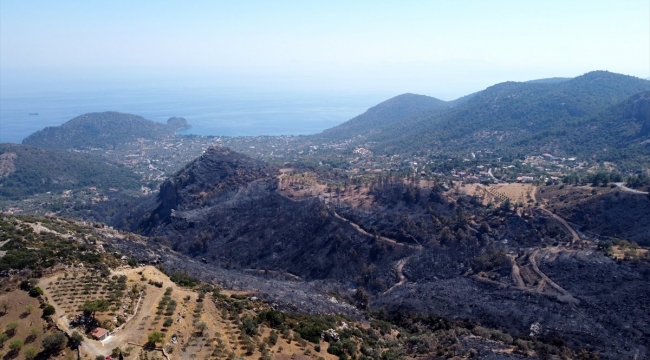 Özellikle Datça'da alevler büyük bir alana zarar verdi. Yangında zarar gören 300 hektarlık alan havadan görüntülendi. Görüntülerde yangının ne kadar geniş bir alanda etkili olduğu ve verdiği tahribat yer aldı.