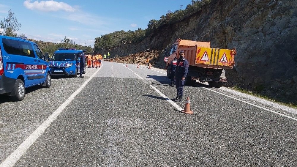 Datça-Marmaris karayolunda bugün öğle saatlerinde meydana gelen heyelan nedeniyle ulaşım tek şeritten sağlanıyor.