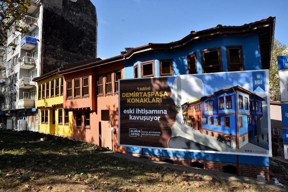 Tarihi ve kültürel miras çalışmaları kapsamında 8500 yıllık Arkeoparktan 2300 yıllık Bitinya surlarına, 700 yıllık Osmanlı eserlerinden, Cumhuriyet dönemi sivil mimarlık örneği yapılara kadar her alanda restorasyonlarla Bursa tarihini gün yüzüne çıkaran Bursa Büyükşehir Belediyesi, şehir trafiğinin en yoğun olduğu İnönü Caddesi üzerindeki 3 sivil mimarlık örneği yapıyı ayağa kaldırıyor. Demirtaşpaşa Mahallesi'nde tarihi Demirtaşpaşa Hamamı'nın hemen karşısında bulunan ve bakımsızlık yüzünden kullanılamaz duruma gelen 3 sivil mimarlık örneği yapıda devam eden restorasyon çalışmalarında sona gelindi. Bursa Kültür Varlıklarını Koruma Bölge Kurulu'nca onaylanan projeler doğrultusunda yapılan restorasyonla bodrum, zemin ve 1 kattan oluşan yapılar ilk günkü halini aldı. Çalışma kapsamında her üç binanın bahçelerinde bulunan mutfak, tuvalet ve tesisat odaları olarak kullanılacak eklenti kısımlarının duvar, sıva, çatı ve tesisat alt yapısı tamamlandı. Ahşap tavan, merdiven, kapı ve seramik imalatları ile elektrik-mekanik tesisat işlemlerinin tamamlanmasının ardından binalar kullanıma açılacak.