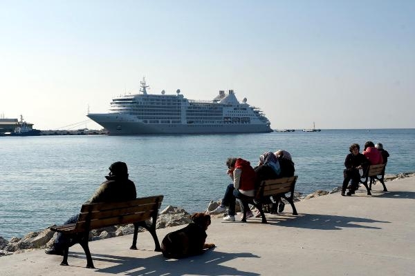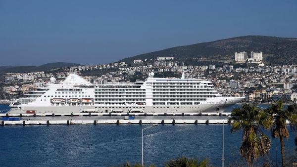 Deneme seferine çıkan lüks yolcu gemisi Kuşadası'na geldi