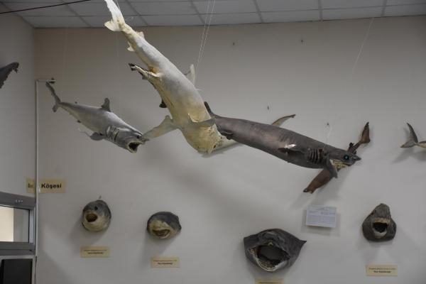 'Somniosus rostratus'un ise bir tür küçük köpek balığı olduğunu belirten Prof. Dr. Tanrıkul, "Özelliği çok derin sularda yaşayabilmesidir. 2 bin 500 metre gibi derinliklerde yaşayabilen bir balık türü. Bu tür kıyısal alanda avcılık yapan profesyoneller tarafından bulunamıyor. Bizdeki örnek Yunanistan ve Ege kara sularını belirleyen 'lodos çukuru' denilen çok derin sulardan bir balıkçının ağlarına takılmış bir tür. Saldırgan bir balık değil. Çok derin sularda yaşadığı için nadir görülen bir tür. Bu türün de sadece bizim merkezimizde bir örneği var. Hocalarımız bu türle ilgili de yurt dışında yayınlar yaptı. Tür olarak ispatlanmış bir tane örnek var o da merkezimizde yer alıyor. Aslı genellikle Doğu Atlantik kıyılarında bulunuyor. Ege kıyılarında da ağlara takılmış bir örnek olarak sergiliyoruz" dedi.