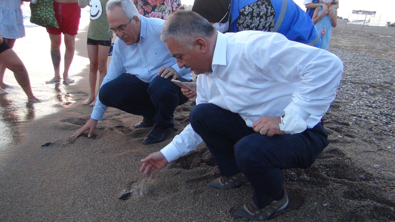Antalya Valisi Ersin Yazıcı, yumurtalarından yeni çıkan caretta carettaları denizle buluşturdu.