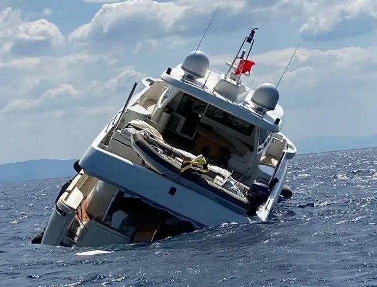 Yatın, içine dolan suyun boşaltılması ve karaya çekilmesi için çalışma başlatıldı.