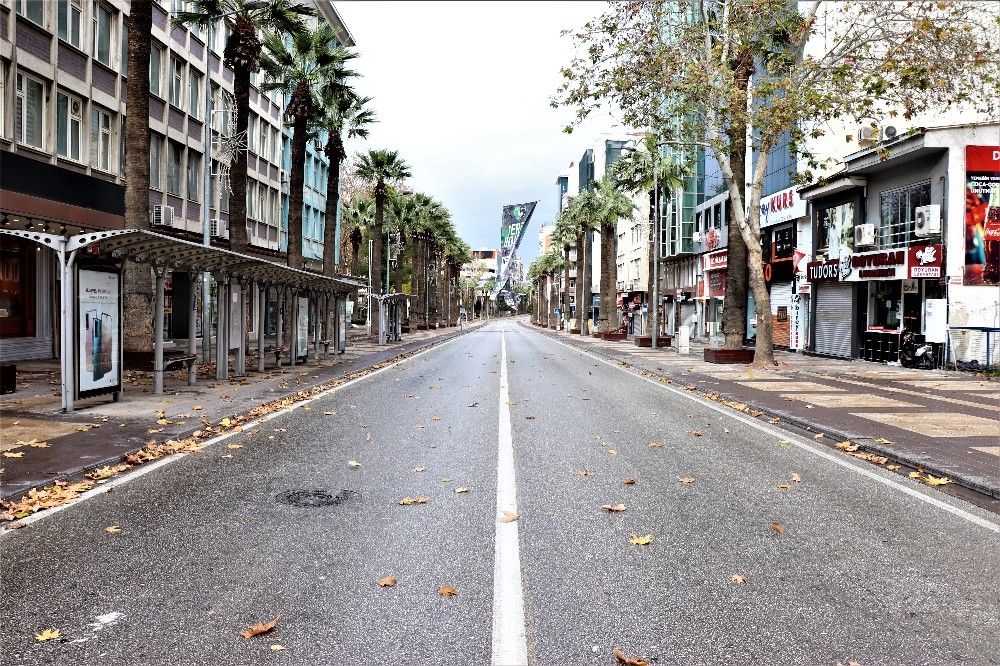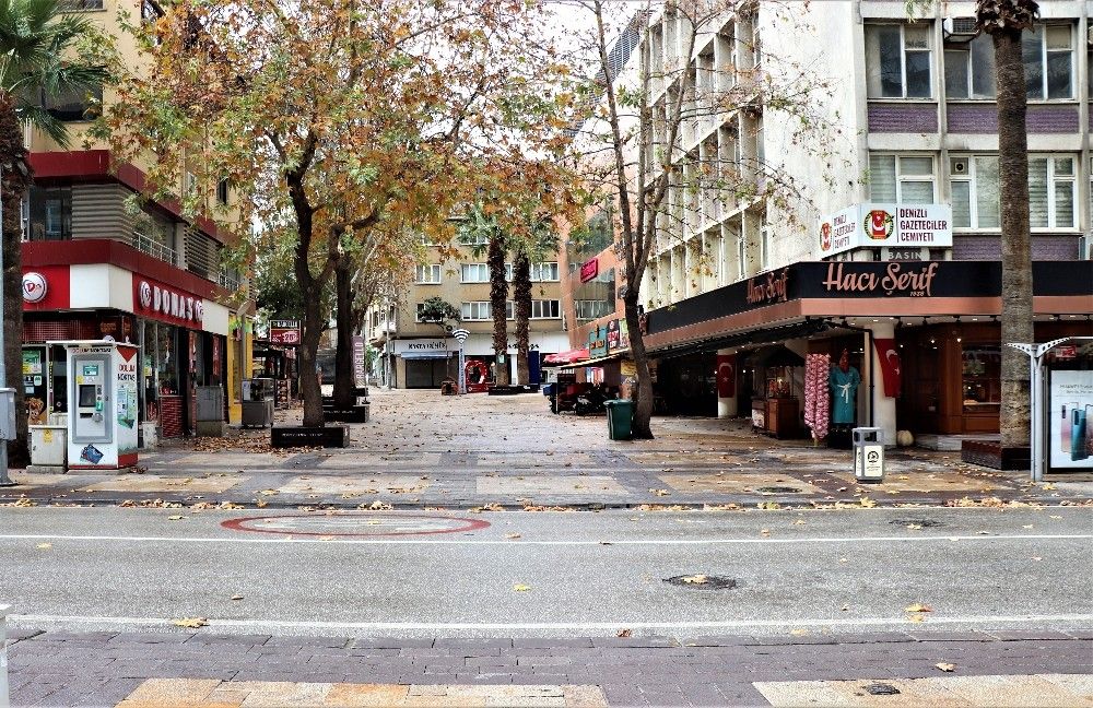 Türkiye'de uygulanan sokağa çıkma kısıtlaması uygulaması nedeniyle Denizli kent merkezinde bulunan fırın ve marketler dışında, esnaflar işyerlerini açmazken vatandaşlarda evlerine kapanarak kısıtlamaya uydu. Sabah saatlerinde başlayan rüzgar ile birlikte ağaçlardaki yapraklar cadde ve sokakları kapladı. Kentte sessizlik oluşurken, polis ekipleri cadde ve sokakları kontrol etmeye devam ediyor.