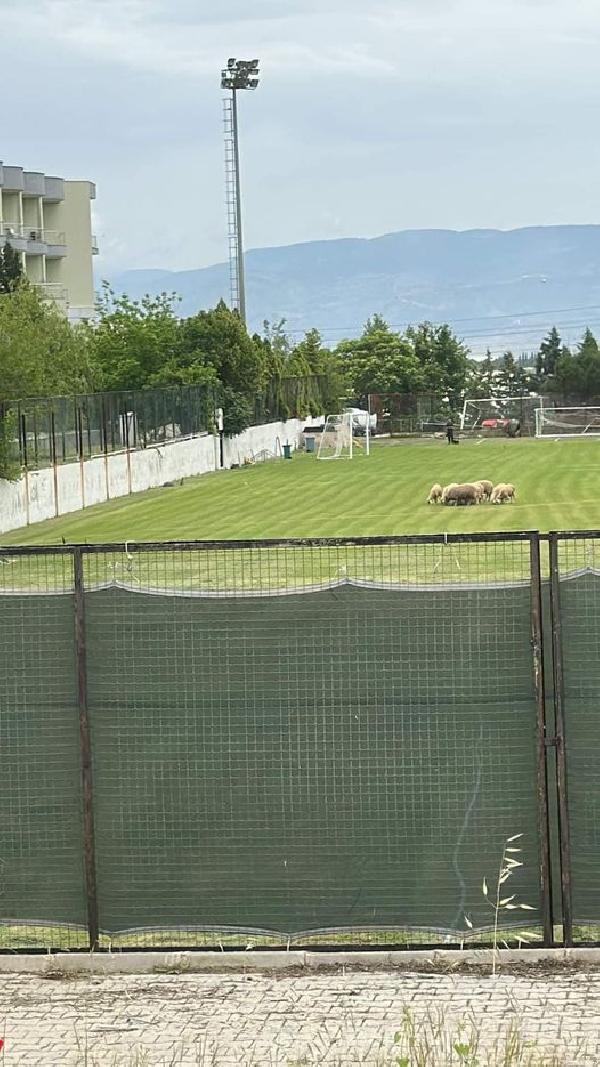 Sosyal medyada gündem olan fotoğrafta Denizlispor'un antrenmanlarını yaptığı Haluk Ulusoy Tesisleri'ndeki sahada koyunların otlatıldığı görüldü. Taraftarlar küme düştükten sonra sessizliğe bürünen kulüpteki şaşırtan görüntüye isyan etti.