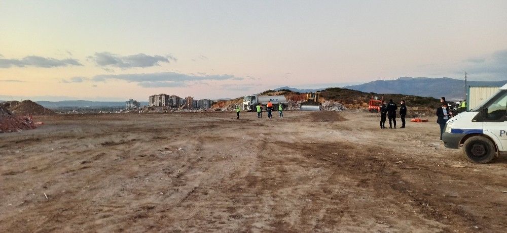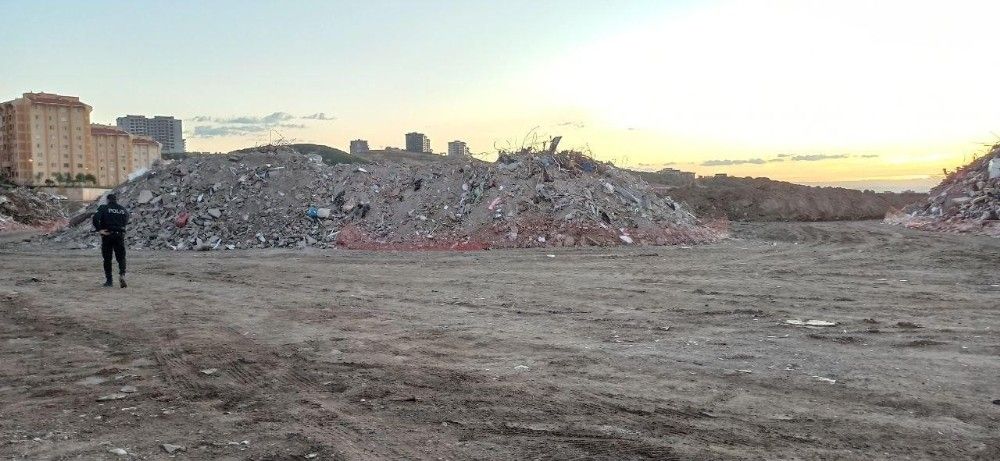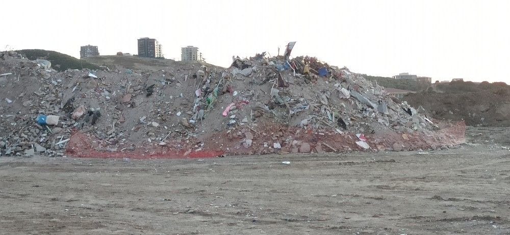 İzmir'de meydana gelen 6.6 büyüklüğündeki depremde yıkılan binaların enkazlarından çıkarılan molozlar, İzmir'in Menemen içesinde güvenlik önlemleri alınan özel bir alana dökülüyor.