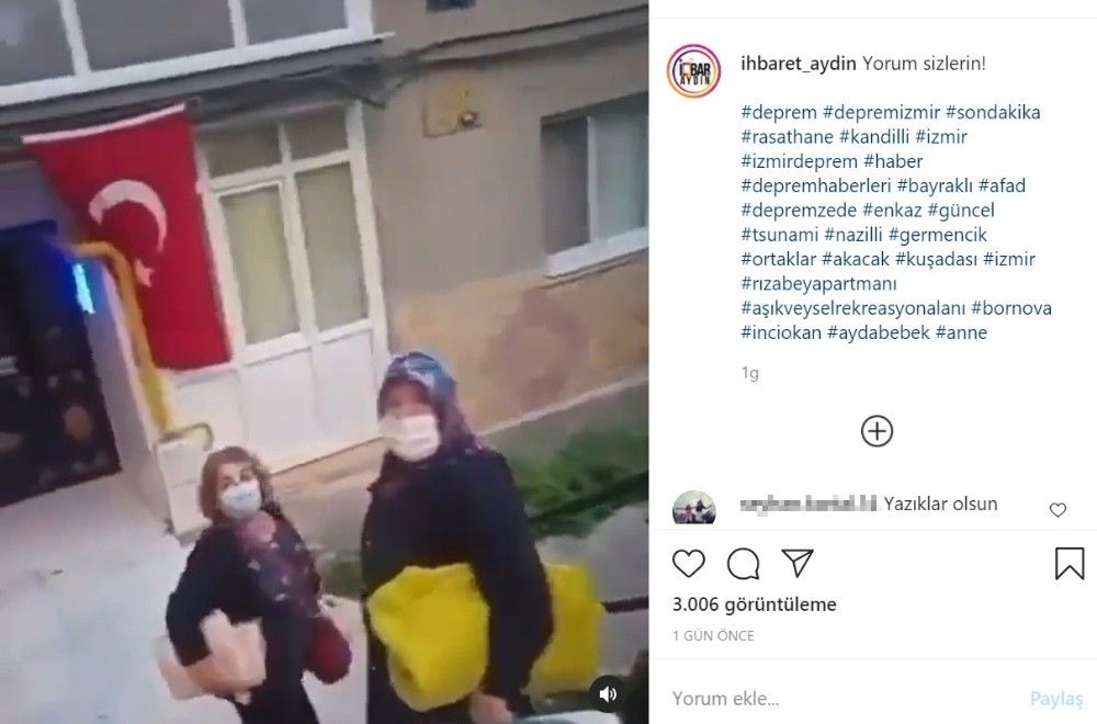 İzmir'de yaşanan depremin ardından depremzedeler için dağıtılan yardım malzemelerini ihtiyaçları olmadıkları halde alan iki kadın bir başka kadın tarafından cep telefonuyla kaydedildi. Yardım malzemelerini alan kadınların 'Aldıysak size ne' demesi ise tepkiye neden oldu.
