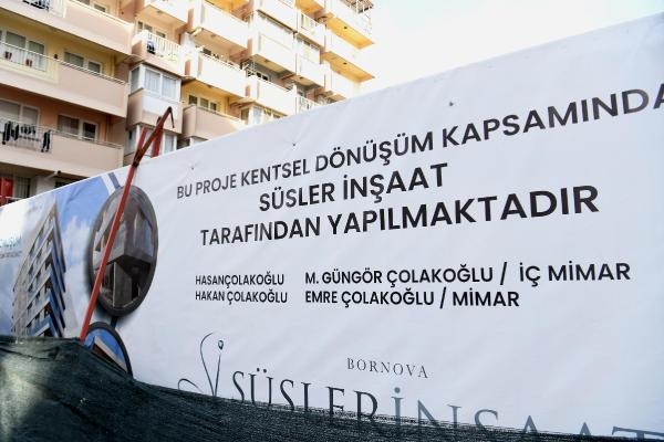 Bornova Belediyesi'nin öncülüğünde, Kazımdirik Mahallesi Zafer Caddesi'nde 30 Ekim İzmir Depremi'nde ağır hasar gören Yiğit Çimen Apartmanı, Bornova Belediyesi'nin girişimi ile yerinde dönüştürülecek. 16 daire ve 4 dükkanın yer alacağı 8 katlı binanın yapımını, kar amacı gütmeden inşaat maliyeti fiyatına üstenen bir inşaat firmasının sahibi Hasan Çolakoğlu, "Başkanımız deprem mağduru vatandaşlarımız için katkı koymamızı rica etti, biz de tabi ki 'hayır' demedik. Bornovamız'a bir katkımız, hayrımız olsun istedik. Binanın inşaatını bir yıl içerisinde bitireceğiz" diye konuştu.