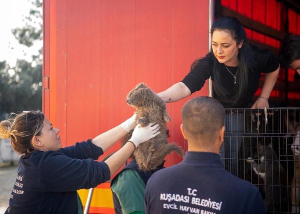 Kahramanmaraş merkezli 6 Şubat depremlerinin ardından afet bölgelerine destek olmak amacıyla seferber olan Kuşadası, depremzede kedi ve köpeklere de yuva olmaya başladı. Hatay'dan Tarım ve Orman Bakanlığınca diğer illere nakledilen 15 kedi ve 21 köpek, Kuşadası Evcil Hayvan Rehabilitasyon Merkezi'ne getirildi. TIR içerisinde özel kafeslerle uzun ve zorlu bir yolculuğun ardından Kirazlı Mahallesi yolu üzerinde bulunan Evcil Hayvan Rehabilitasyon Merkezi'ne ulaşan kedi ve köpekler merkezin hayvansever çalışanları tarafından sevgiyle karşılandı. Uzman veteriner hekimlerce ilk sağlık kontrolleri yapılan hayvanlar, tedavi ve rehabilitasyon süreçlerinin tamamlanmasının ardından sahiplendirilerek yeni yuvalarına kavuşturulana kadar Kuşadası Belediyesi'nin konuğu olmayı sürdürecek.
