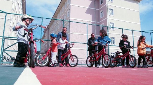 Depremzede çocuklara gönüllü olarak bisiklet eğitimi veriliyor