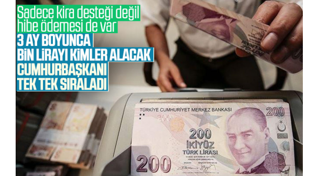 Erdoğan, üç ay süreyle esnaflara 1000 liralık destek ödemesi yapılacağını söyledi.
