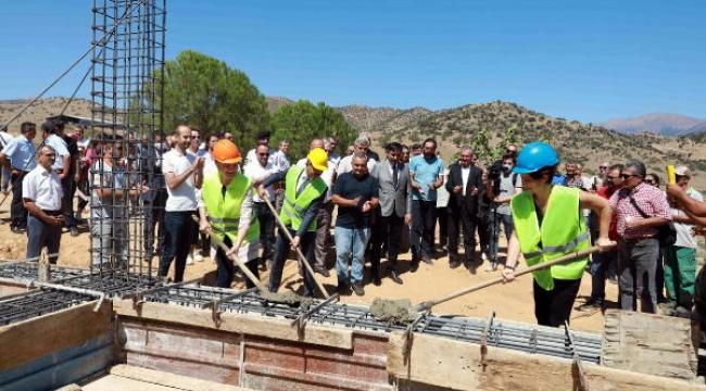 Konuşmaların ardından Rektör Hotar ve  Kutlu, merkez inşaatının ilk harcını attı.