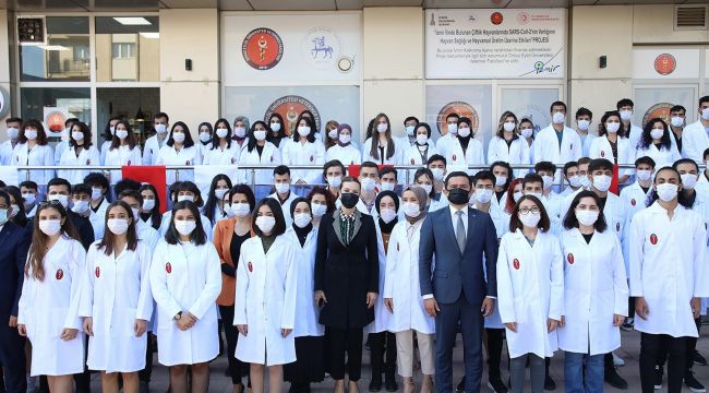 Konuşmaların ardından DEÜ Veteriner Fakültesi'ne en yüksek dereceyle kayıt yaptıran İlkay Yüksel ile İbrahim Kızıltaş'a hediyeleri takdim edildi, öğrenciler beyaz önlüklerine kavuştu.