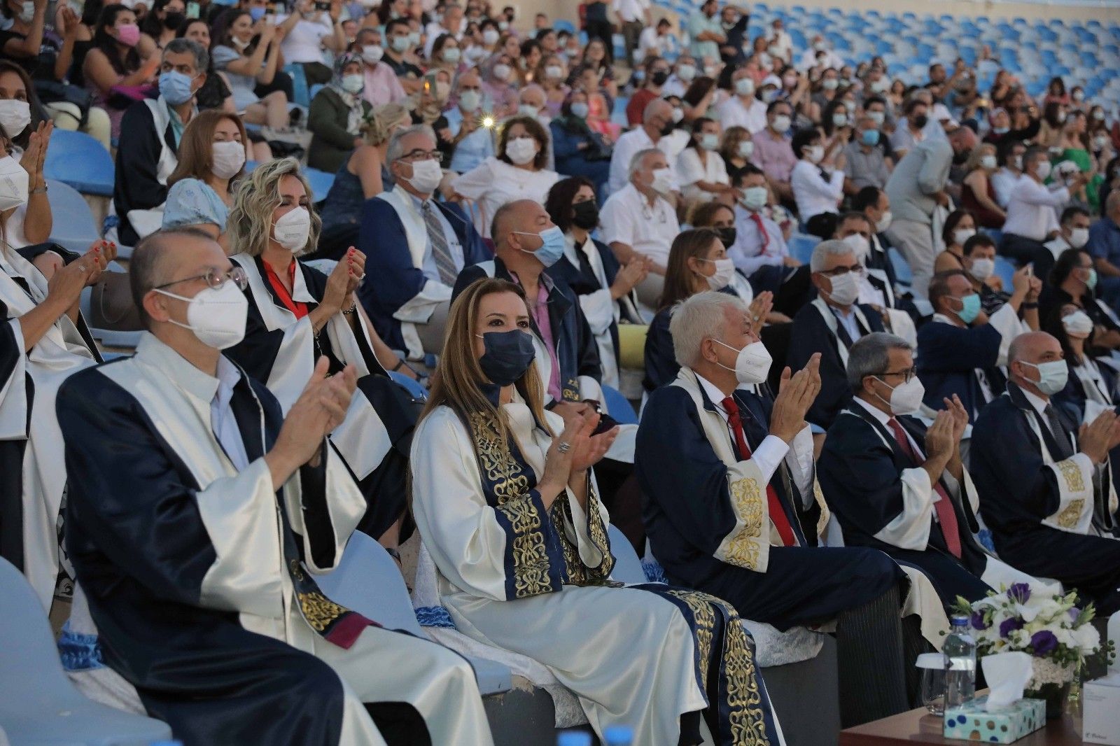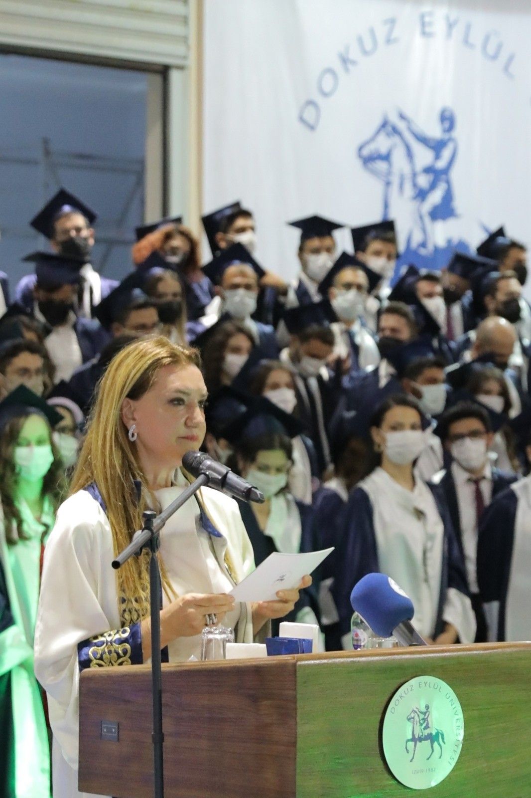 Dokuz Eylül Üniversitesi (DEÜ) Tıp Fakültesi 2020-2021 yılı mezuniyet töreniyle birlikte, genç hekimler mesleğe ilk adımı attı. DEÜ Rektörü Prof. Dr. Nükhet Hotar, genç hekimlere "Yemininize sadık kalın" tavsiyesinde bulunarak, "Artık yetkin ve donanımlı bireyler olarak ülkemize hizmet edeceksiniz. Hiçbir şeyin insan sağlığından daha önemli olamayacağını unutmayın" diye konuştu.