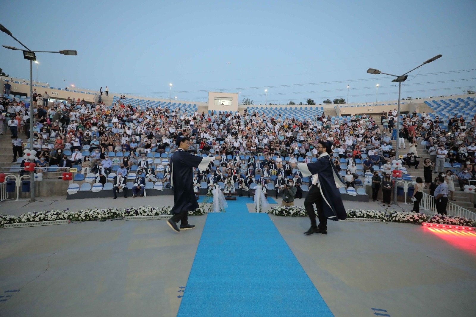 Fakülte birincisi Dr. Betül Coşkun ise, "Ulu Önderimiz Mustafa Kemal Atatürk tarafından üzerimize yüklenen 'Beni Türk hekimlerine emanet edin' sorumluluğunun altına giriyoruz. Bizi yetiştiren değerli hocalarımızın bize öğrettiği bilgilerin yolumuzu aydınlatacağımıza emin olduğumuzu belirtiyor; sağlıkta şiddettin artık son bulmasını diliyoruz" diye konuştu. Törende fakülte birincisi Dr. Betül Coşkun'un mezuniyet kütüğüne plaket çakmasının ardından hekimlik andı okundu. Dereceye giren öğrencilere ödülleri verildi ve 43. dönem mezunları diplomalarına kavuştu. Tören, öğrencilerin keplerini fırlatmasıyla sona erdi.